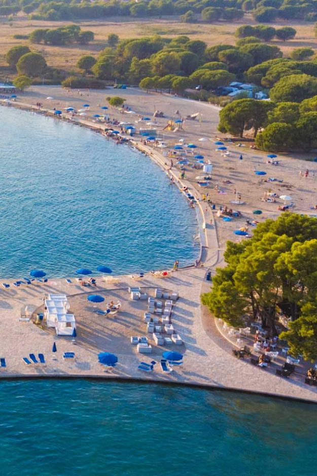 A 25 minute walk away from the old town of Nin, you will find Zaton Holiday Resort. It’s a huge camping with tiny houses, trailers, caravans, and a beautiful sandy beach. This is a great location to spend a day or two, especially if it’s a windy day. The beach here is more protected from the winds that come from the mountains and can be pretty strong on the Nin beaches some days.